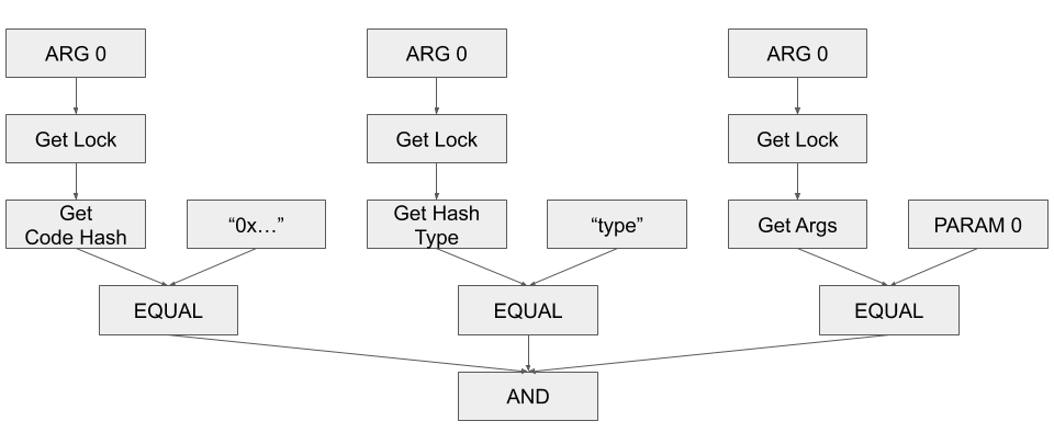 PARAMS = ["0x12345678ab12345678ab12345678ab12345678ab"]ARGS = [cell]def filterARGS[0].lock.code_hash == " 0x9bd7e06f3ecf4be0f2fcd2188b23f1b9fcc88e5d4b65a8637b17723bbda3cce8" &&ARGS[0].lock.hash_type == "type" &&ARGS[0].lock.args == PARAMS[0]虽然通常情况我们不会以这种方式编写代码,但它看上去会更接近于与实际的 AST :特殊的 ARGS 和 PARAMS 节点用于表示传递给函数的实参和形参(通过父 AST 节点或 RPC 用户传递)。