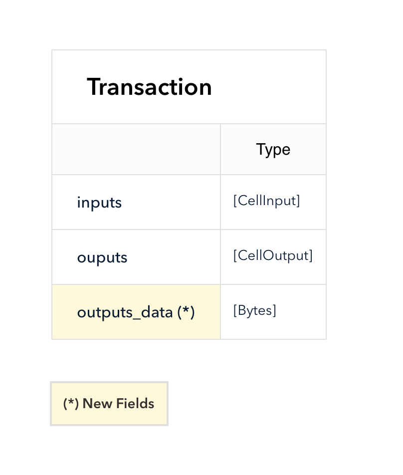 此交易销毁了输入 inputs 中的 cells,同时在输出 outputs 中创建了新的 Cells。