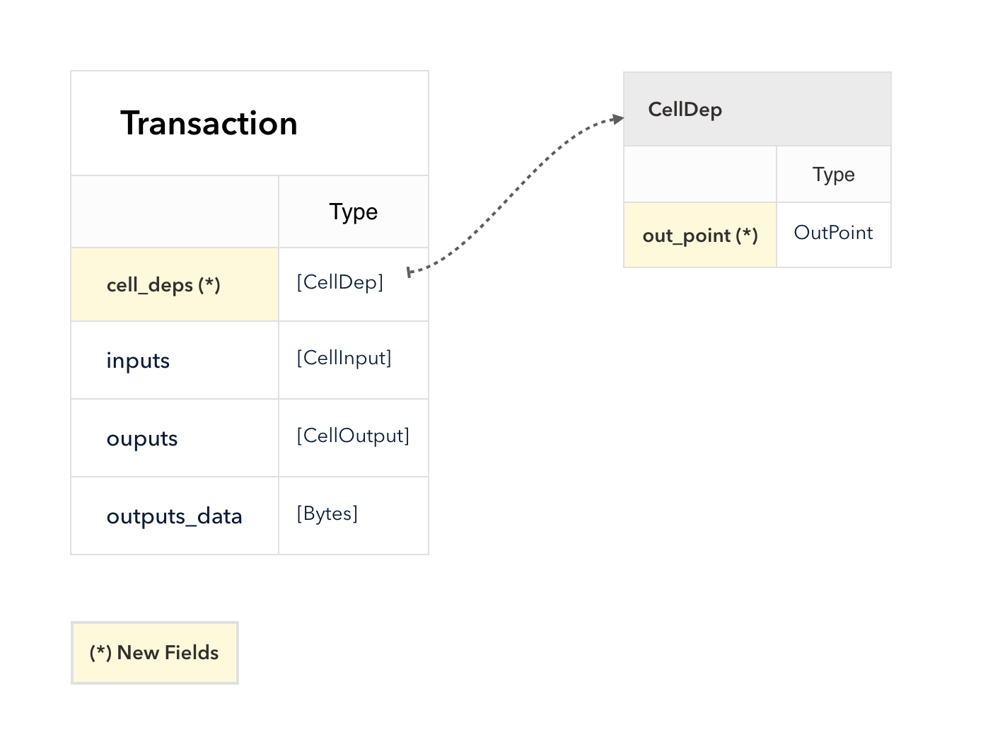 在 cell_deps 的 cells 必须是可用的(Live 的),就像是 inputs 一样。但别于 inputs,一个只在 cell_deps 中被使用的 cell 不会被认为是(已经被)销毁(Dead)了。