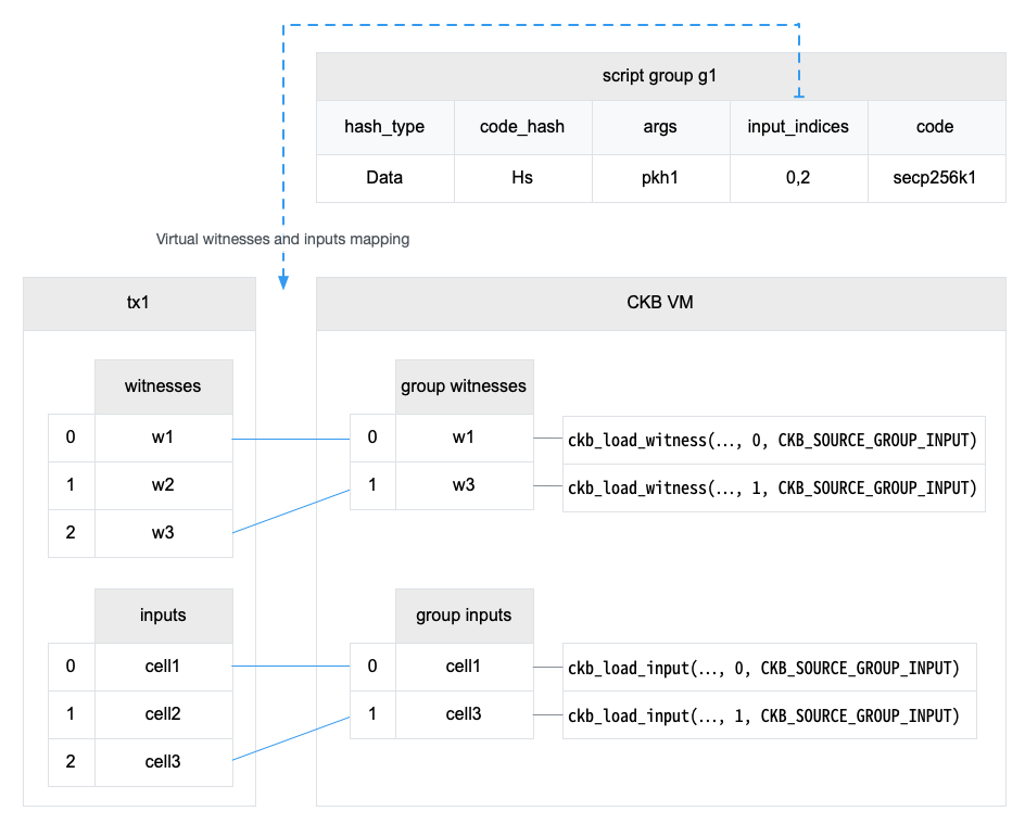 所有读取与输入数据相关的 syscalls,都可以使用 CKB_SOURCE_GROUP_INPUT 以及虚拟输入数组中的索引,比如 ckb_load_cell_* 的 syscalls 系列。