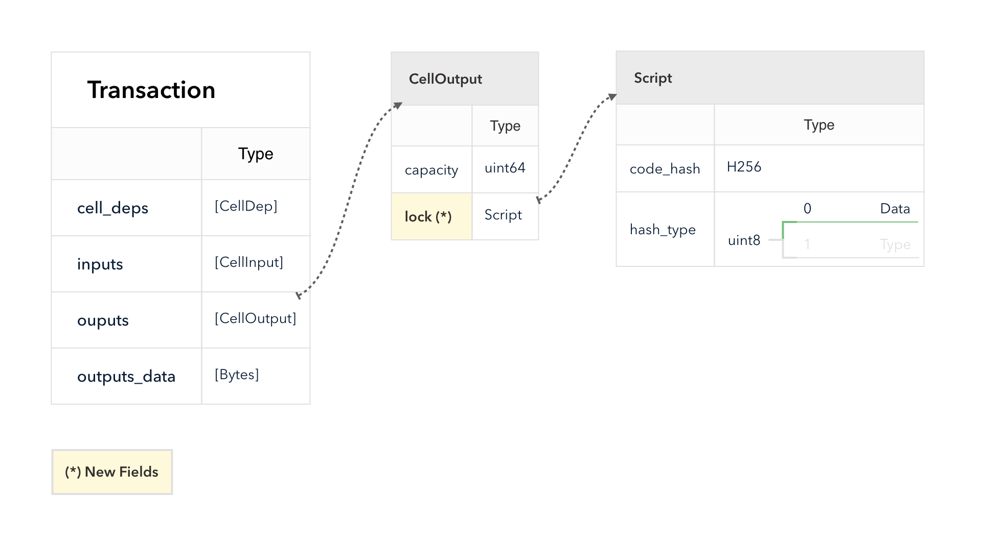- 在任一交易中,输入和输出中的类型脚本,CKB 都必须运行。