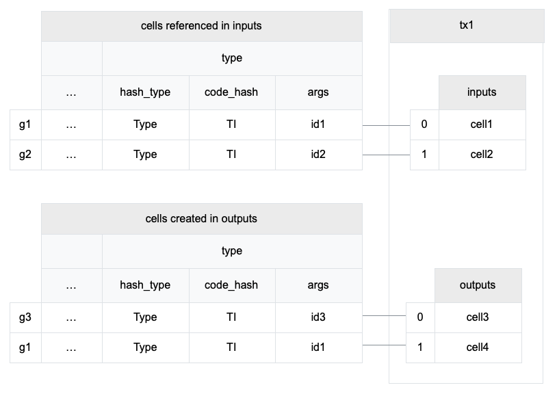 从 Part 1 的类型脚本中我们知道,类型脚本会先将输入与输出聚集。换句话说,如果一个类型脚本是 Type ID,那么在同个群组的输入与输出都有同样的 Type ID。
